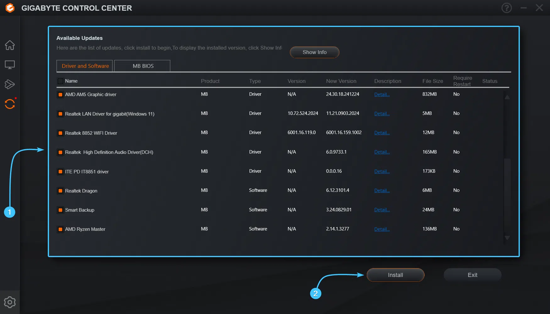 Pasos para actualizar drivers desde Gigabyte Control Center
