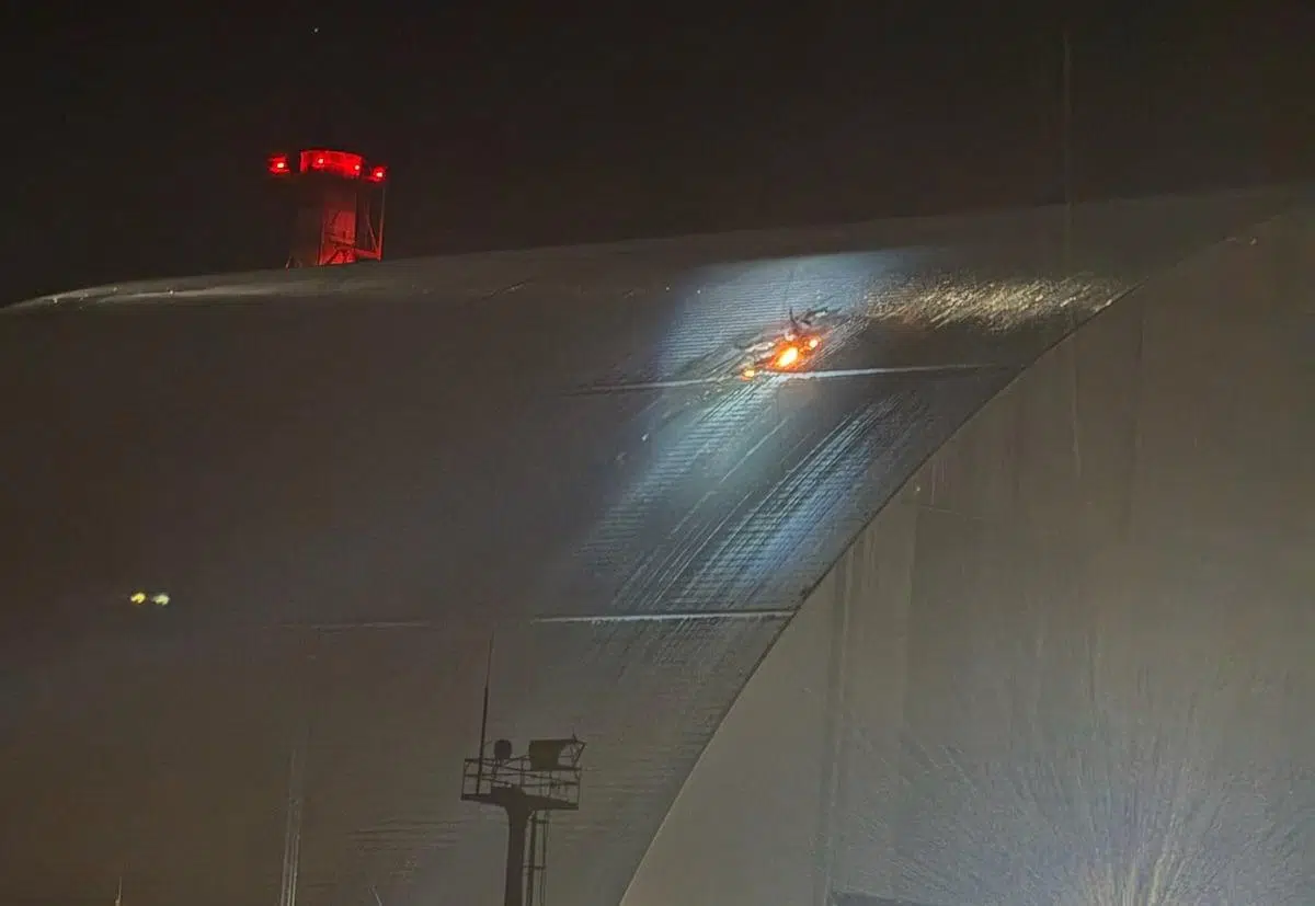Para poder sofocar el incendio, los operarios abrieron varios accesos de unos 30 centímetros en la parte superior de la cúpula, a través de los cuales vertieron agua. Las bajas temperaturas, de hasta -16 ºC, complicaron la tarea al congelarse parte del agua, lo que obligó a perforar nuevas aberturas para continuar el trabajo de extinción y evitar que el fuego se propagara.
