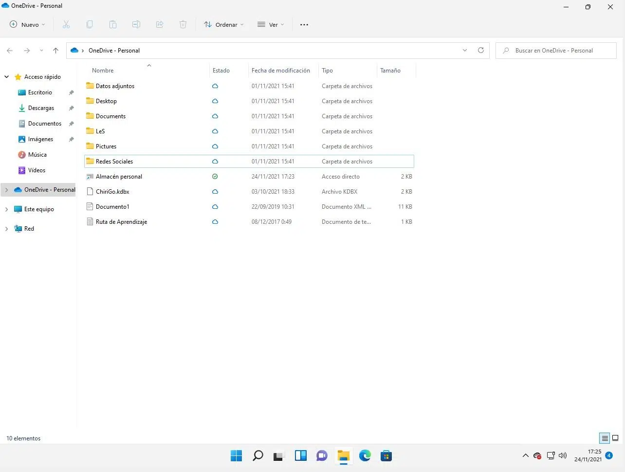 OneDrive ofrece un espacio gratuito básico y, si tienes suscripción de Microsoft 365, bastante más capacidad. Para usarlo basta con que hayas iniciado sesión con tu cuenta de Microsoft y tengas el cliente de OneDrive activo en el equipo. La carpeta de OneDrive aparece en el panel izquierdo del Explorador.
