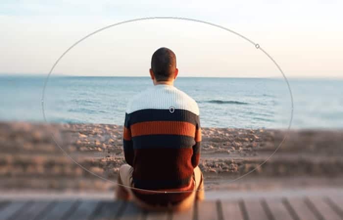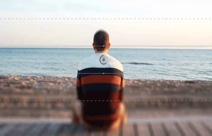 En este proyecto de muestra, el foco está más en la persona que mira al mar, para ello se debe suavizar la playa y el mar. Dado que la persona y la terraza deben seguir siendo el centro de atención
