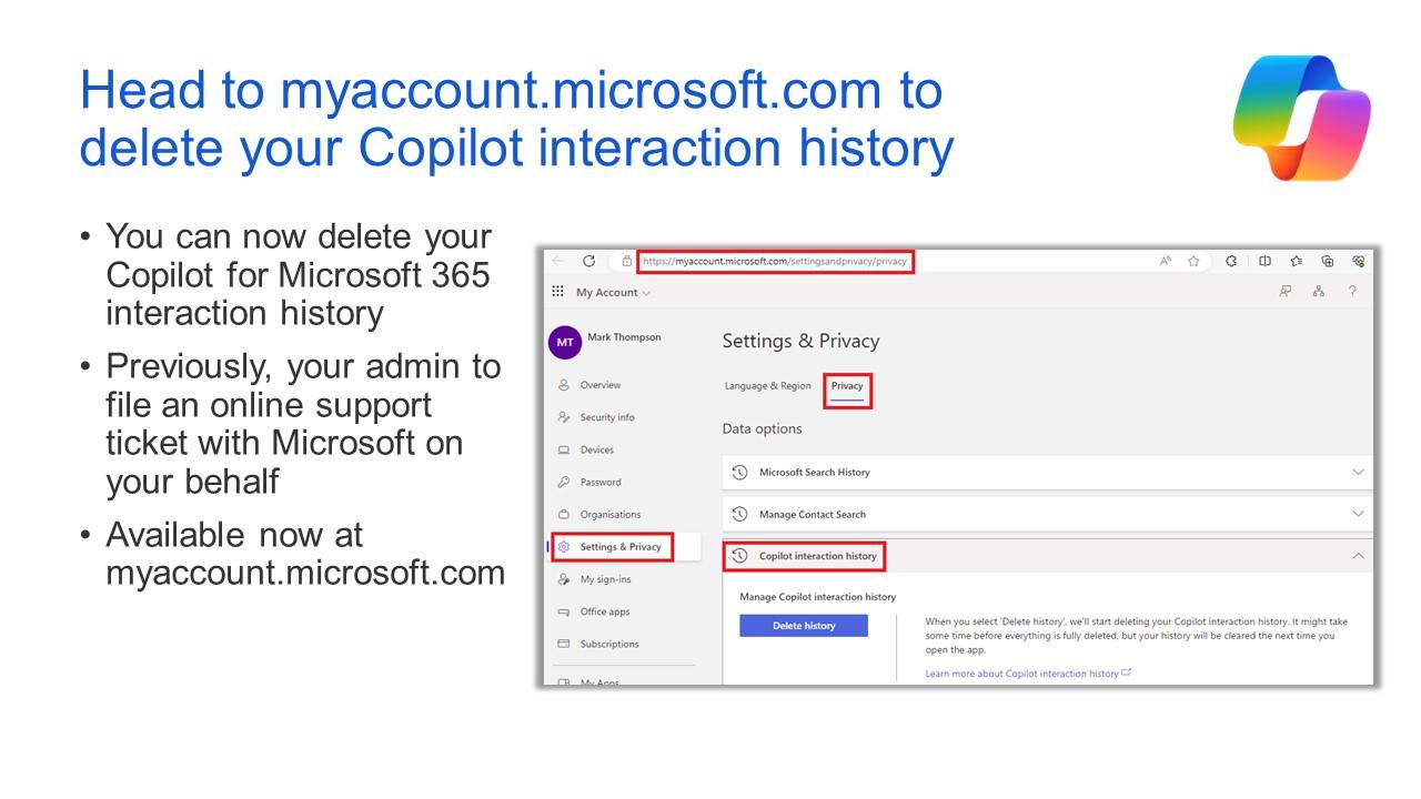 Qué ocurre cuando borras el historial de Microsoft 365 Copilot