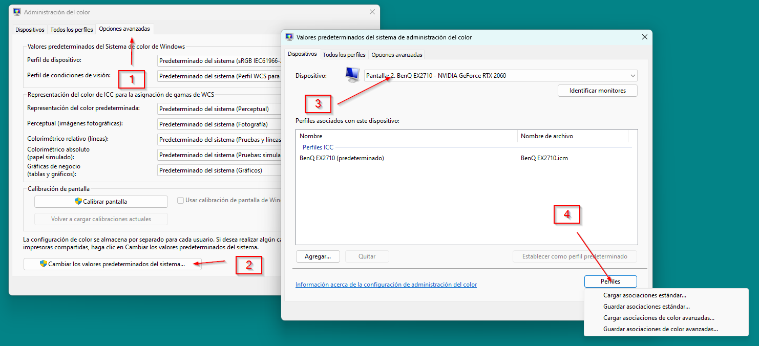 Una vez instalados, necesitas decirle al sistema qué perfil debe usar para cada monitor. Esta parte es clave, porque no basta con instalar el archivo, hay que asociarlo al dispositivo correcto.