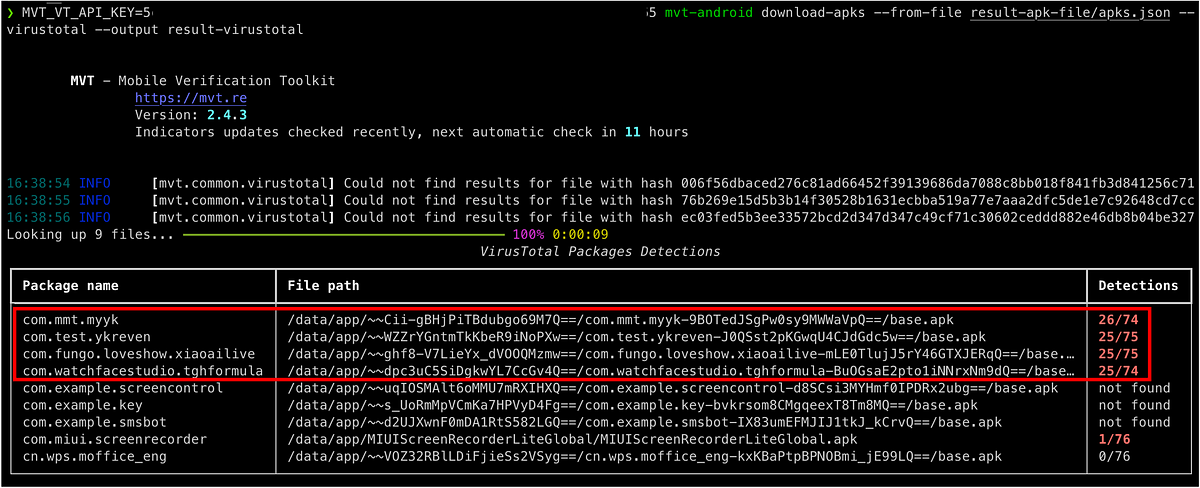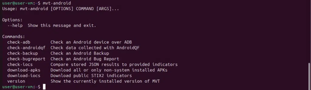 Este último comando descarga los indicadores de compromiso que usará MVT durante el análisis. Mantenerlos actualizados es clave para no perder cobertura frente a campañas recientes.