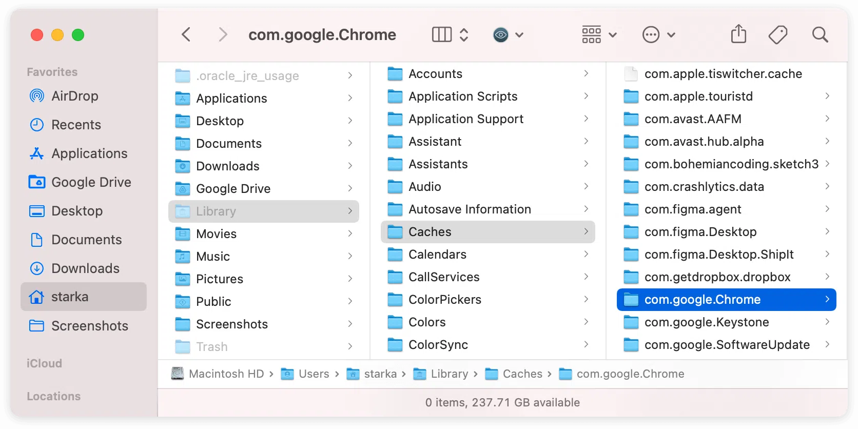 Caché de usuario: desde Finder > Ir a la carpeta escribe ~/Library/Caches