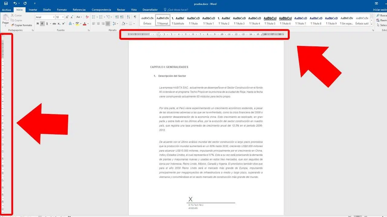 Una vez activada esta opción, cada vez que estés en Diseño de impresión y tengas visible la regla desde la pestaña Vista, verás también la regla vertical en el lado izquierdo. Si cambias a otra vista, como Lectura o Borrador, la regla vertical desaparecerá al no ser compatible con esos modos.