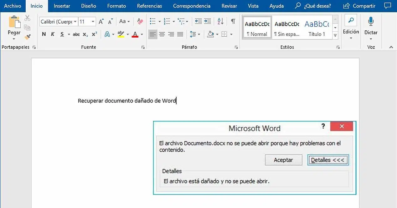 Cuando Word detecta problemas al abrir, suele mostrar avisos para intentar recuperar el contenido. Si aparece la opción de recuperar el documento, acepta; a veces rescata parte del texto, sobre todo si el formato no está muy dañado.