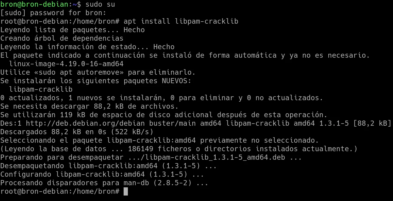 sudo apt install libpam-cracklib libpam-pwquality libpwquality-tools
