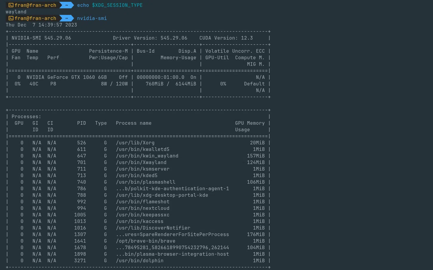Si estás en una sesión Wayland o tienes un compositor Wayland activo, es probable que veas algo similar a: