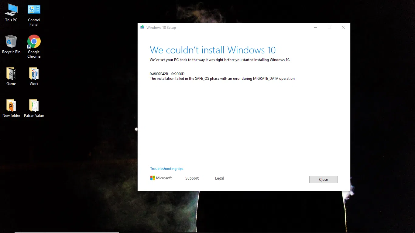 - The Installation failed in the SAFE_OS phase with an error during BOOT operation (0xC1900101 – 0x20017).