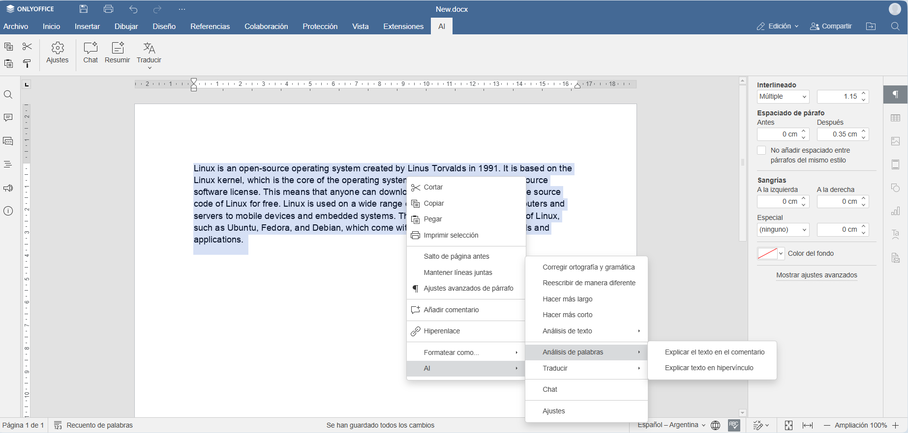 IA en ONLYOFFICE para Linux