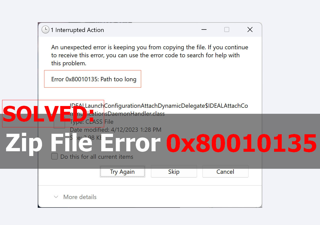 Si estás intentando descomprimir un ZIP en Windows y te aparece el mensaje “error 0x80010135: ruta demasiado larga” o “Ruta de acceso demasiado larga”, que sepas que no eres el único. Este fallo es muy típico al trabajar con archivos comprimidos grandes, instaladores o copias de seguridad con muchas carpetas anidadas.
