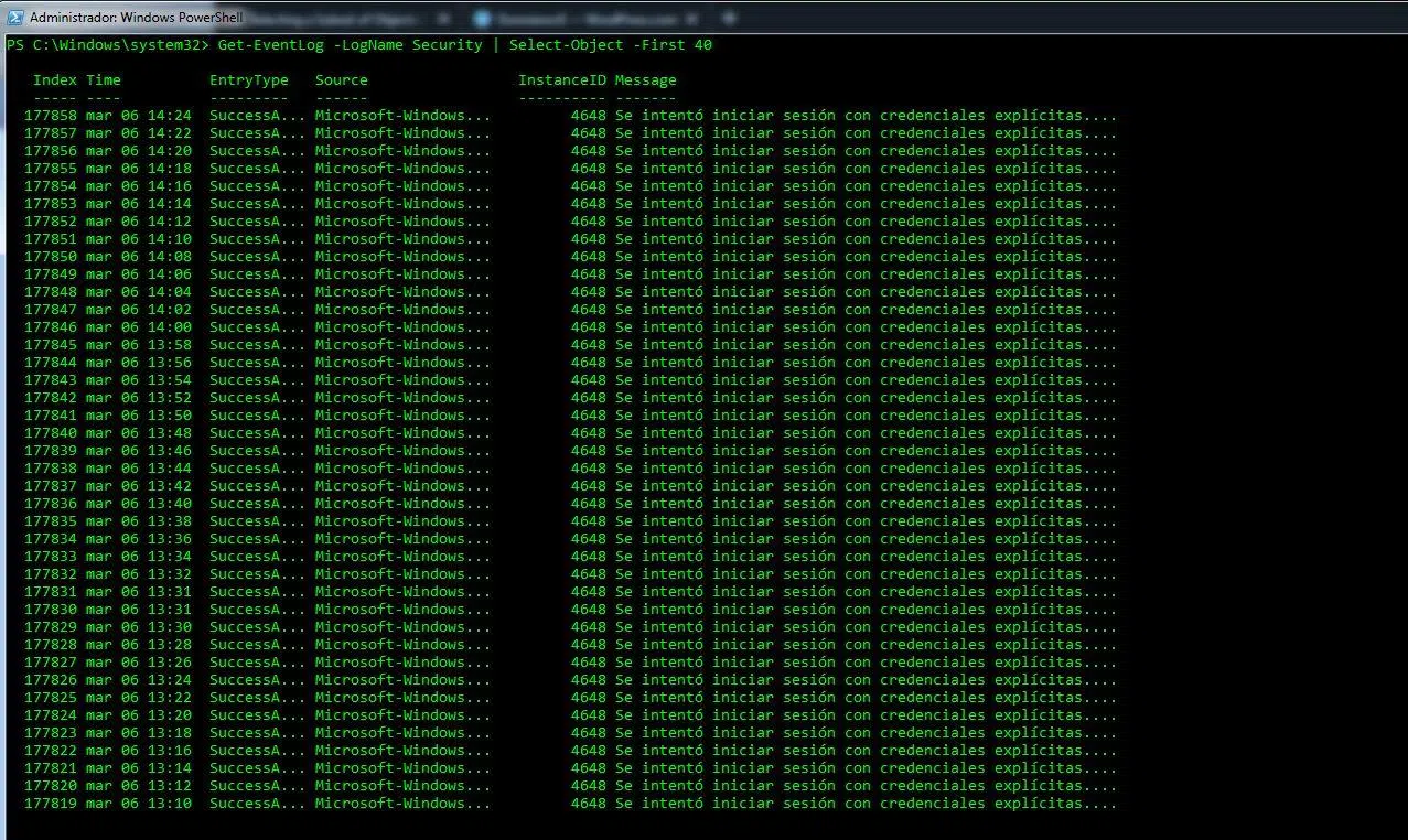 Permisos insuficientes en el registro Security: para leer eventos de seguridad en equipos remotos o locales hace falta pertenecer a grupos con privilegios (por ejemplo, Administradores del equipo). Si Get-EventLog o Get-WinEvent devuelven acceso denegado, revisa membresías y directivas.