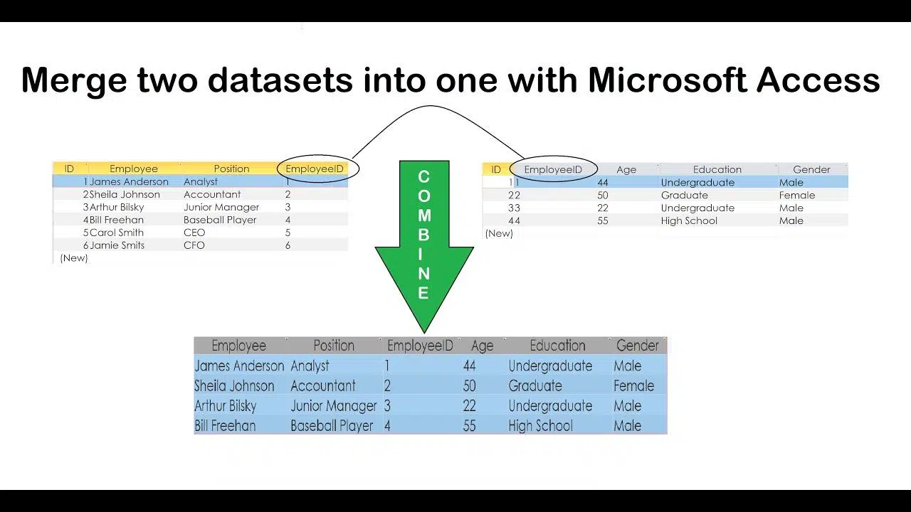 Fusionar no es solo copiar y pegar. En la práctica significa consolidar tablas homólogas, mantener integridad referencial y decidir criterios para resolver registros duplicados o en conflicto. Implica, además, comprender cómo Access relaciona tablas y cómo se combinan datos de distintos orígenes, algo que se realiza mediante combinaciones (JOIN) en consultas o a través de consultas UNION cuando lo que quieres es apilar conjuntos de resultados compatibles.