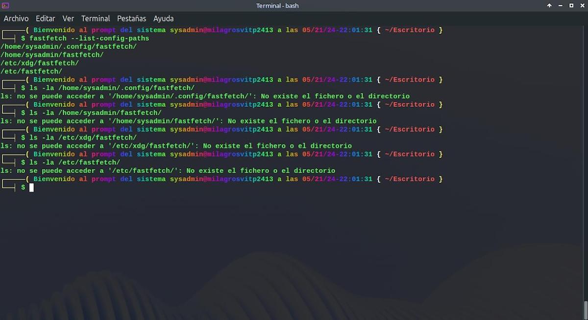 Si quieres saber qué rutas busca Fastfetch para encontrar archivos de configuración, utiliza: