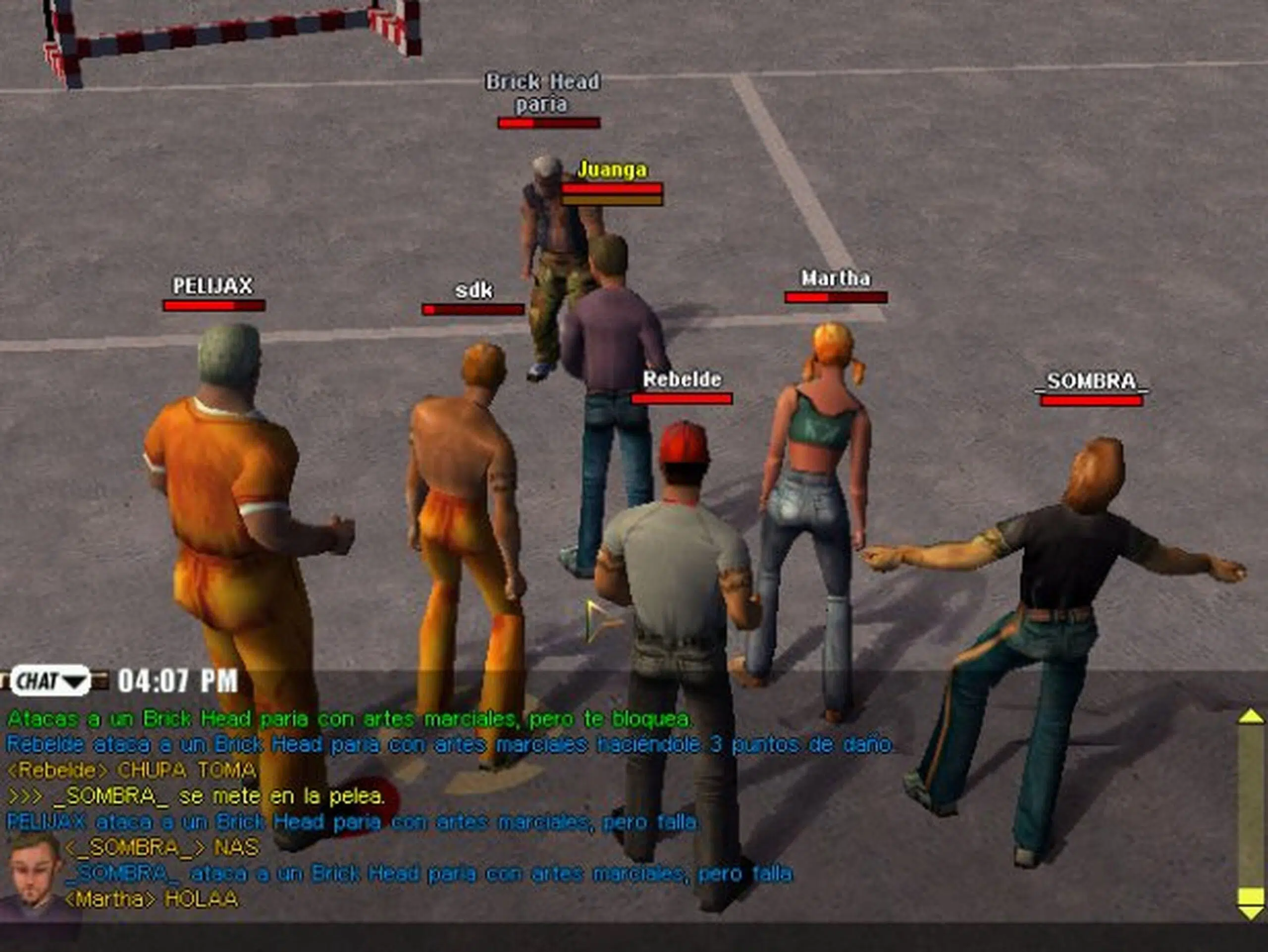 El chat era otra columna central: un sistema configurable y avanzado, heredero espiritual de Intrachat (la herramienta interna que nació durante el desarrollo), fomentaba la coordinación y la vida social. Aquella comunicación in-game hizo de La Prisión, en la práctica, una proto red social de clanes y camarillas donde cada apodo construía reputación.