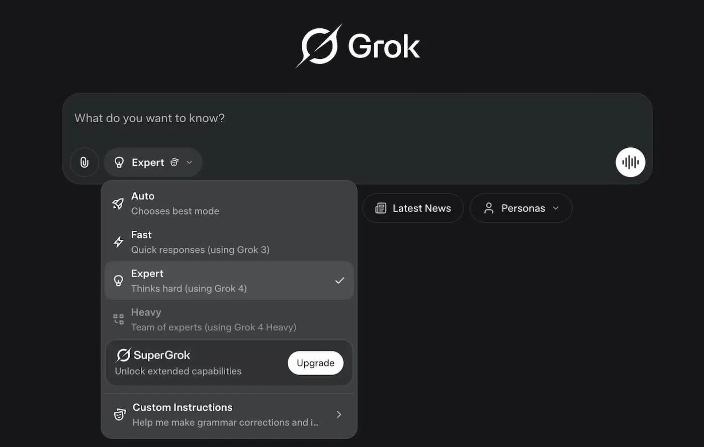 - Heavy/Expert para precisión y tareas complejas; Fast/Grok‑4‑Fast para latencia mínima; Auto equilibra según la consulta.