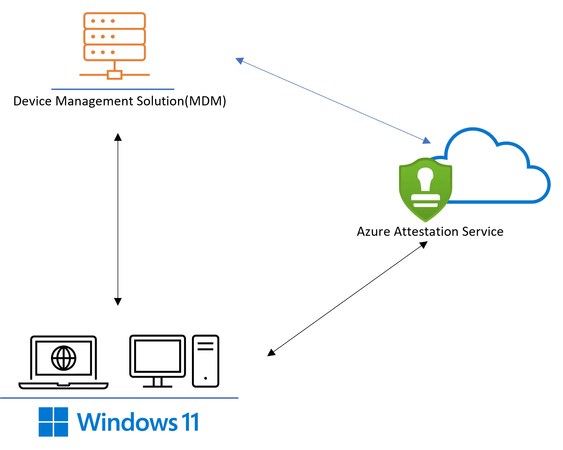 Health Attestation está pensado para integrarse con soluciones de administración de dispositivos móviles (MDM) como Microsoft Intune, Citrix Endpoint Management u otras herramientas compatibles con el CSP de HealthAttestation. El flujo típico es: el MDM pide al dispositivo pruebas, el dispositivo contacta con el servicio de atestación, recibe un blob cifrado, lo reenvía al MDM y este pregunta al servicio si ese blob es válido y qué nivel de seguridad refleja.