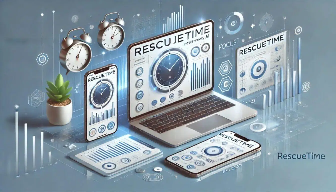 RescueTime es una aplicación de medición y gestión del tiempo para ordenador y móvil que registra automáticamente el uso de apps y sitios web, clasifica las actividades y ofrece reportes para tomar decisiones; su objetivo es ayudarte a entender tus patrones y a recuperar el control de tu jornada.