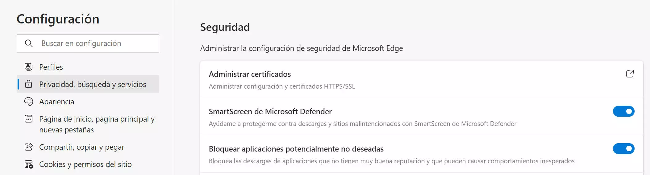 En Microsoft Edge, puedes controlar SmartScreen a nivel de navegador.