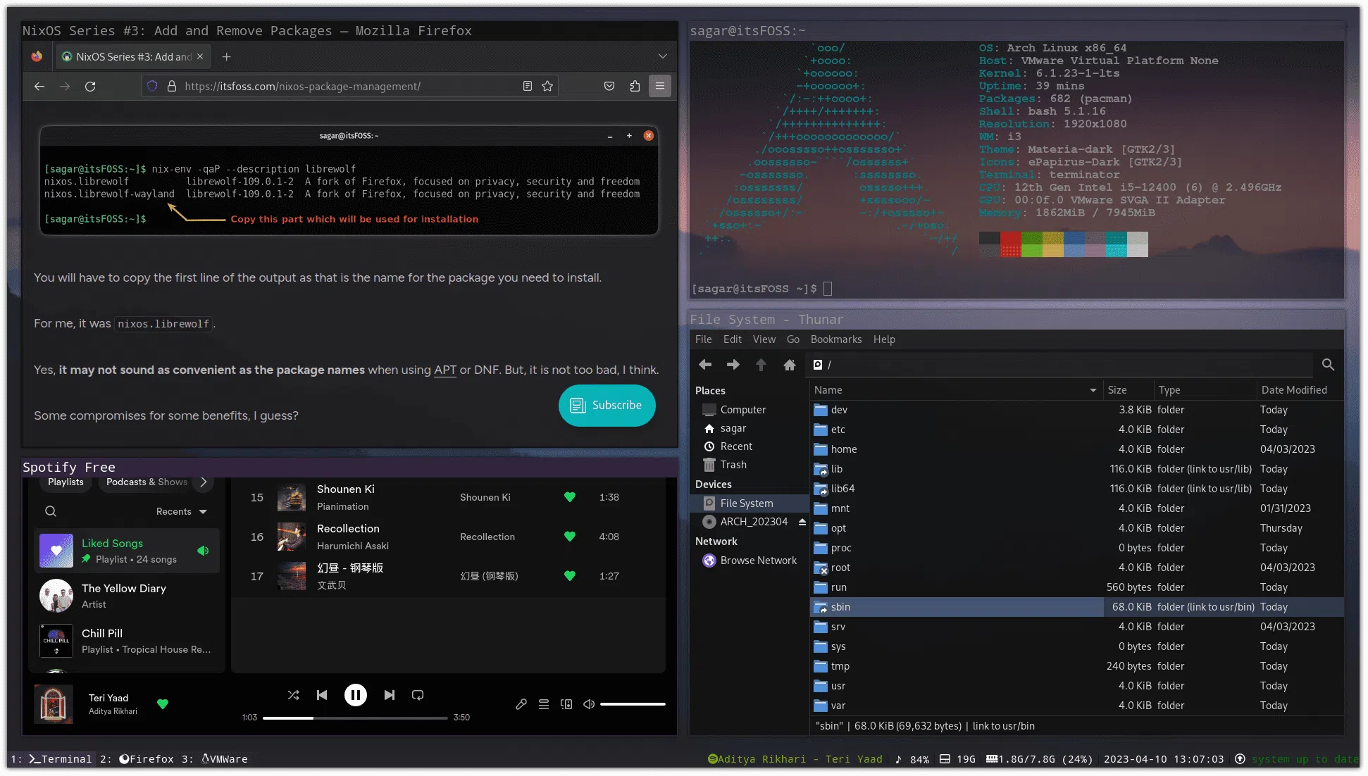 Un Tiling Window Manager (o gestor de ventanas en mosaico) se diferencia de un gestor de ventanas flotante tradicional en que las ventanas no se superponen por defecto: cada ventana ocupa una parte del espacio disponible y el sistema se encarga de reajustarlas automáticamente cuando abres o cierras nuevas aplicaciones. Si tienes dos ventanas, cada una ocupará media pantalla; con tres o cuatro, el espacio se reparte sin que tengas que ir colocándolas a mano.