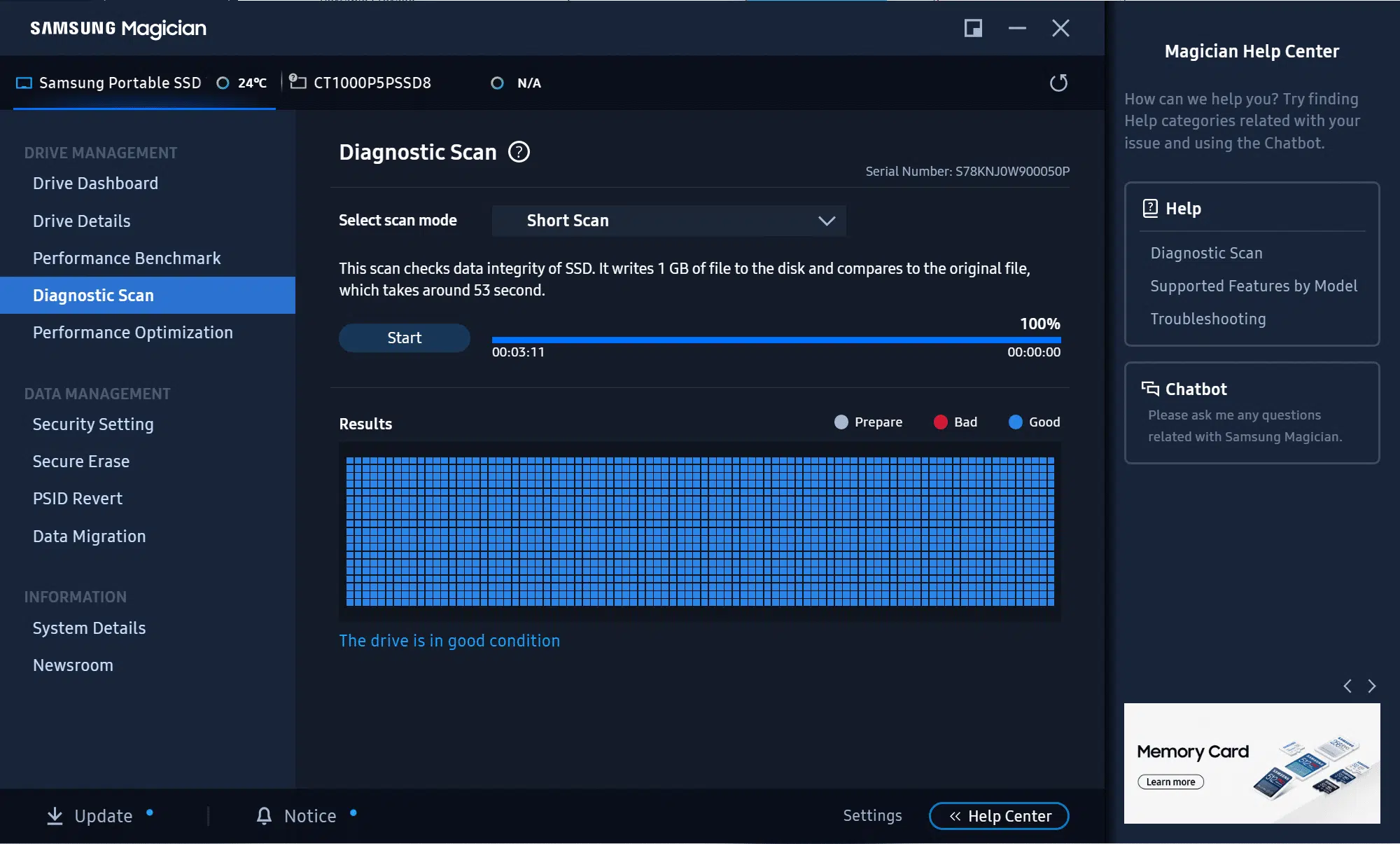 Para las series clásicas como Samsung 830, 840 u 850, Samsung Magician incluye una función de Borrado Seguro (Secure Erase) que restaura la unidad a su estado de fábrica en términos de rendimiento y deja los datos irrecuperables incluso para servicios avanzados de recuperación.
