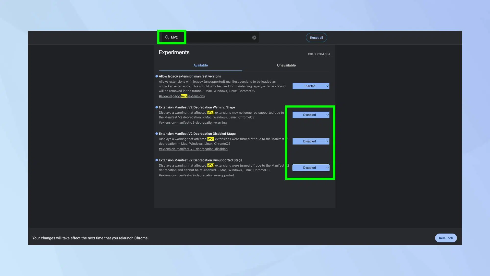 chrome://flags/y busca “Allow legacy extension manifest versions”, actívalo y reinicia de nuevo Chrome. - Entra en