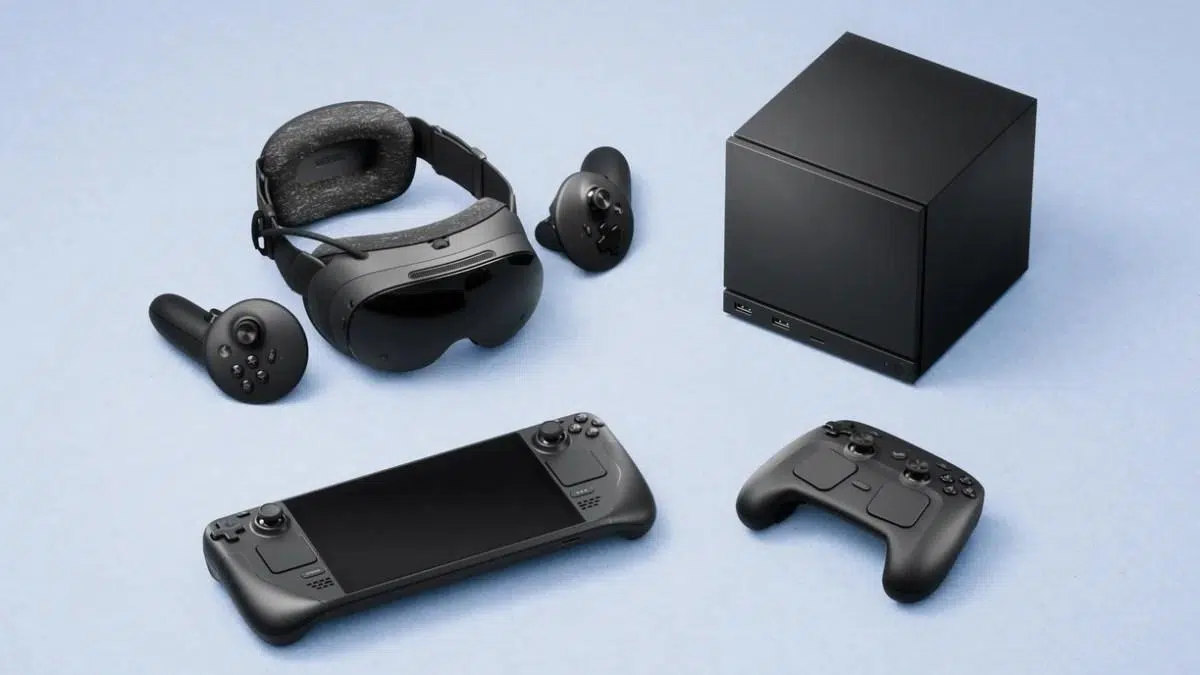 La propuesta busca cubrir sofá, escritorio y VR con SteamOS como nexo: un mini PC que aspira a 4K/60, un visor autónomo con enlace de 6 GHz y transmisión foveada, y un mando de baja latencia con sticks magnéticos, todo previsto para España y Europa a comienzos de 2026.